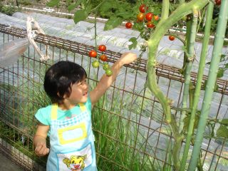 そして、もぎたてミニトマトをパクパク食べるマコ![]()