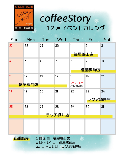 公開している時期的に、いまは焼山に出張販売をしておりますが、8日から駅前店、23日から年末にかけてラクア緑井店で出店となります。ラクア緑井店は初! 緑井にはお久しぶりにお邪魔することとなり、天満屋緑井店のときにお世話になったお客様との邂逅も楽しみしております。